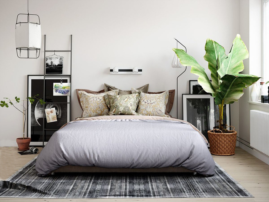 Sự hòa trộn của một số yếu tố của những phong cách khác trong không gian phòng ngủ phong cách scandinavian.