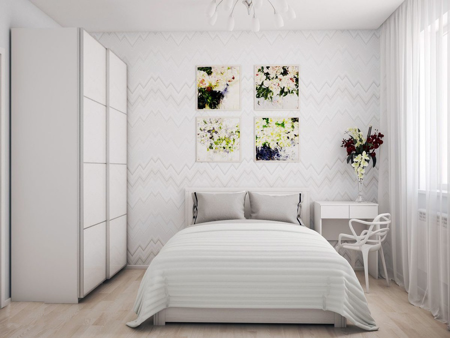 Thuận lợi hơn hết là phong cách Bắc Âu đã có đặc trưng màu trắng chủ đạo nên bạn có thể vận dụng ngay phong cách này vào trong thiết kế phòng ngủ nhỏ. Vừa định hình được phong cách thiết kế lại vừa cảm giác gian phòng rộng rãi hơn. Trang trí một chút màu sắc tươi sáng bằng chậu cây xanh và tranh ảnh, đèn trang trí là điểm nhấn.