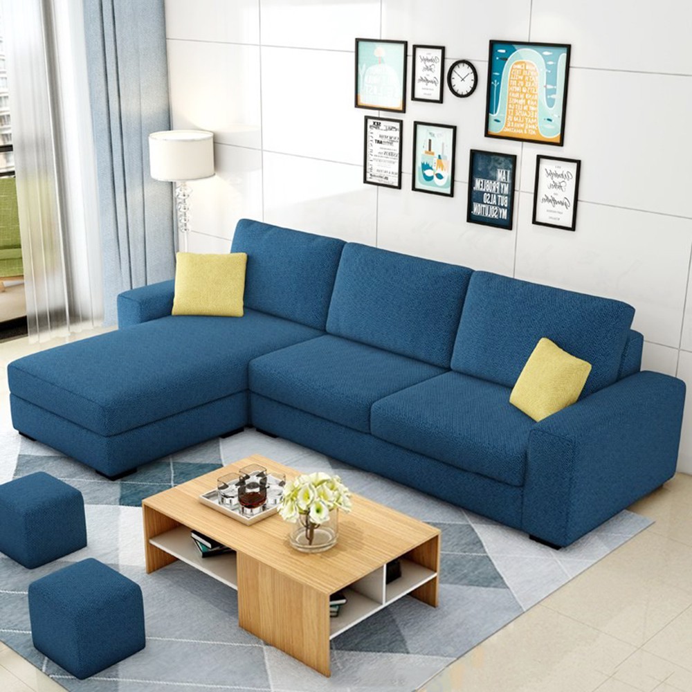 Dùng bộ bàn ghế sofa góc: Những bộ ghế sofa góc được thiết kế theo kiểu chữ L thường sẽ giúp cho căn phòng trông được ngăn nắp, gọn gàng hơn. Nó có thể di chuyển và tận dụng được góc phòng và chân tường, giúp mở rộng được không gian căn phòng.