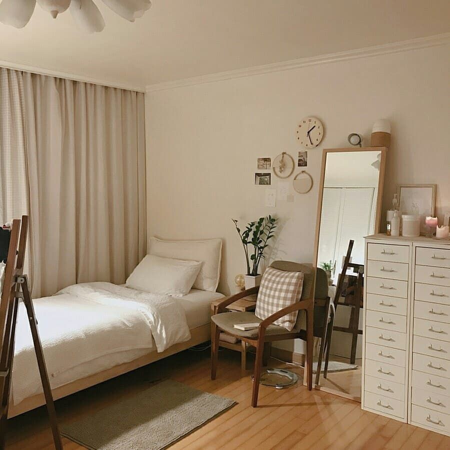 Ngoại trừ giường ngủ, bàn học, tủ áo quần… bạn nên hạn chế đặt nhiều đồ đạc trong phòng. Vì chúng sẽ biến không gian lộn xộn, chật chội hơn. Lại thêm một ý tưởng để bạn có động lực biến căn phòng chuẩn Hàn đó là người Hàn rất tối giản. Họ chỉ đặt những đồ nội thất cần thiết. Tiết kiệm tiền, nhìn đơn giản nhưng vẫn hấp dẫn, thoải mái.
